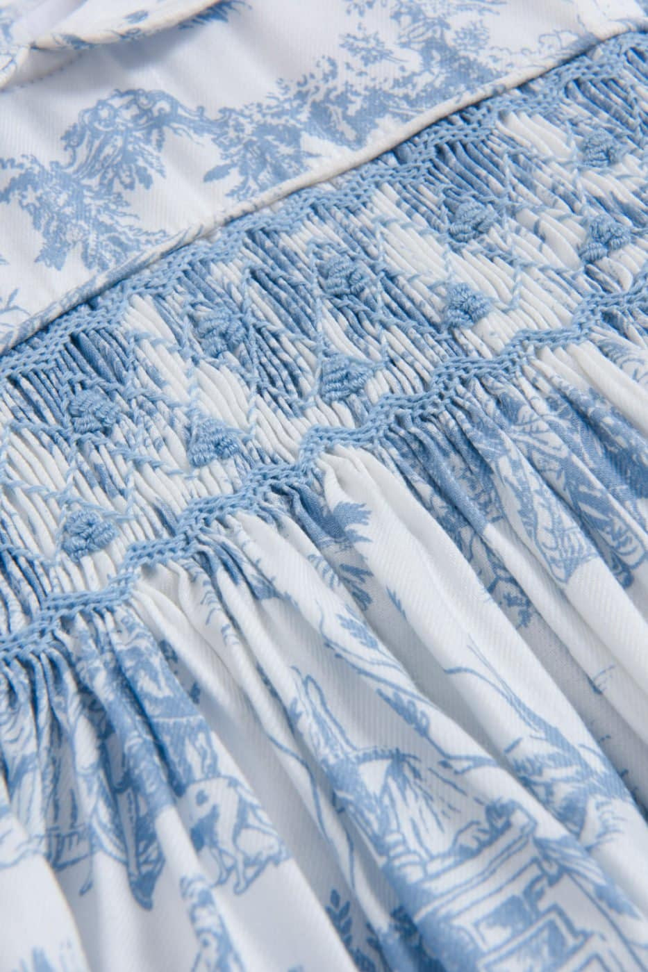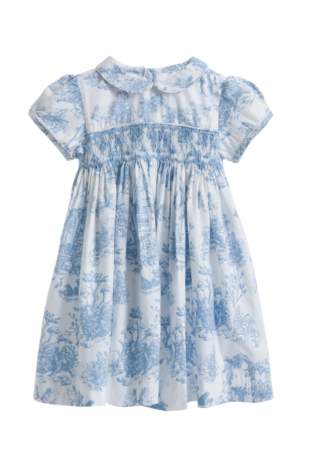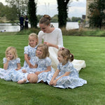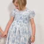 The sky blue Theodora dress puts a stylish twist on the classic Toile de Jouy. There is no denying that this is the dress for the star of the show!
