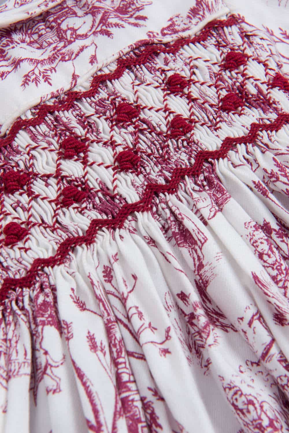 Delicate puffed cap sleeves create a romantic silhouette, while intricate hand smocking and embroidery makes this signature dress one of the most luxurious in the Annafie catalogue.