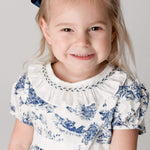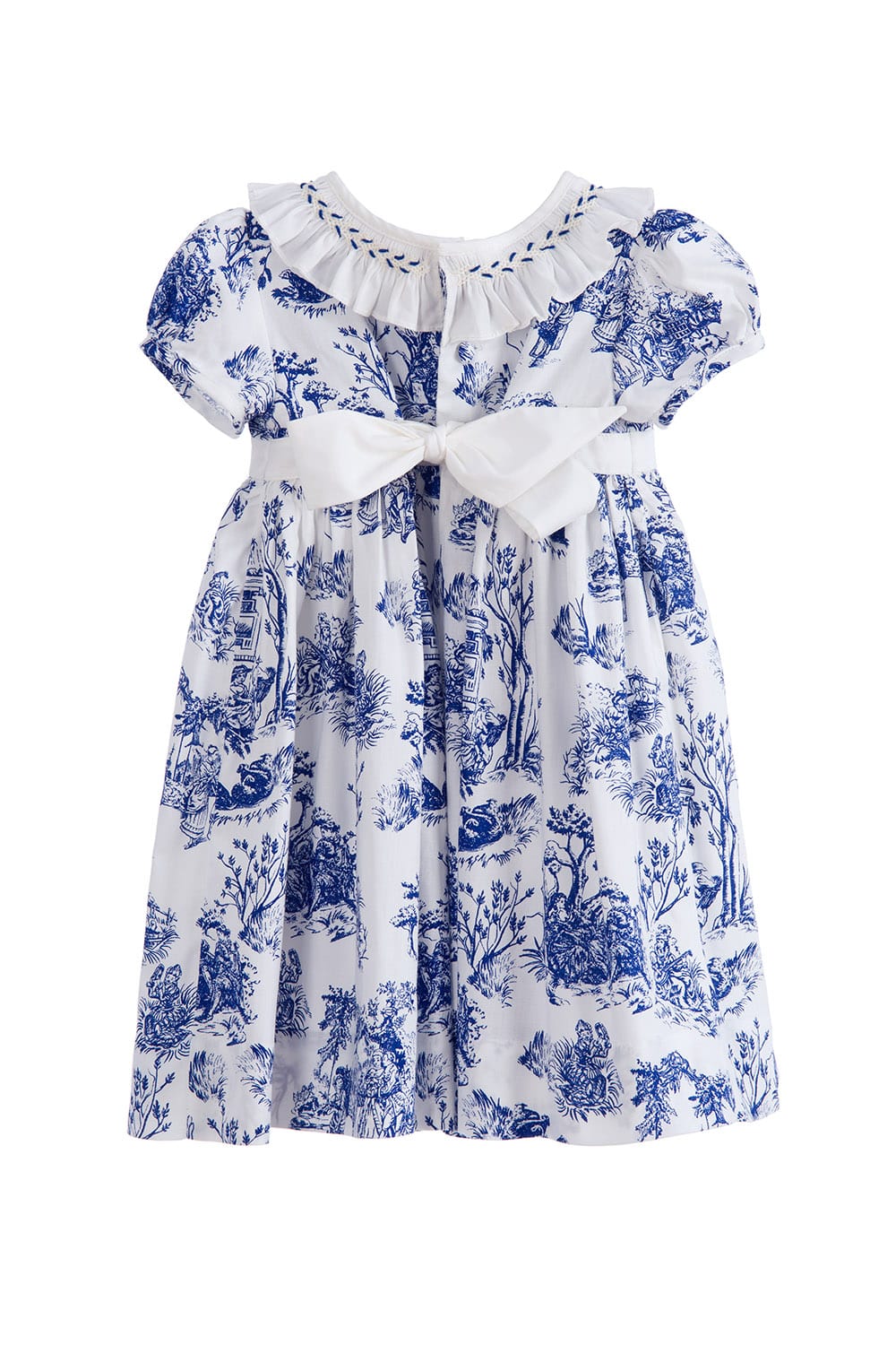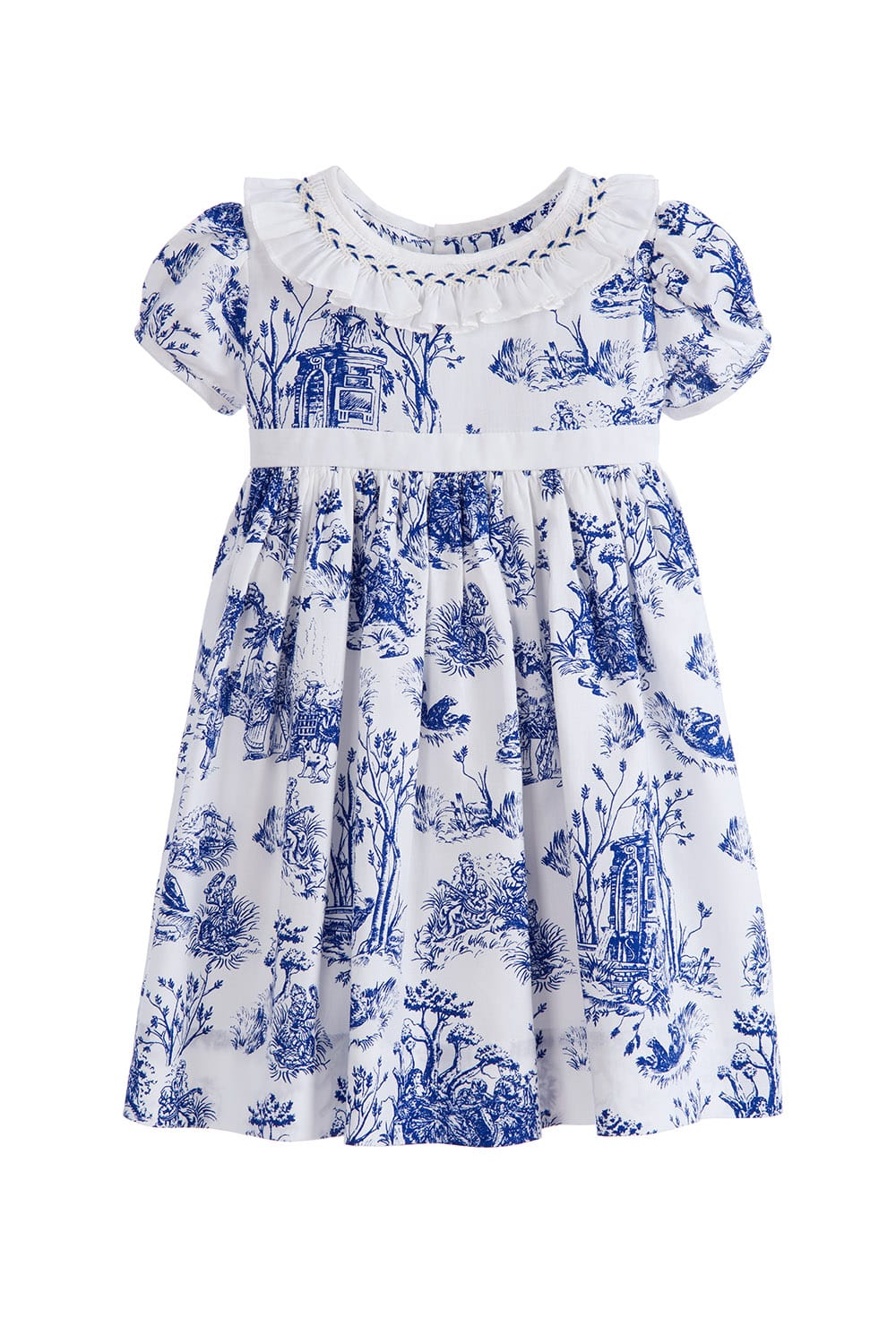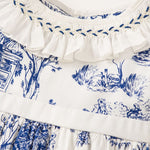 Introducing the Genevieve dress ¡V the perfect fusion of timeless elegance and contemporary style! A stunning addition to our Toile de Jouy collection, this dress is sure to make the wearer the star of the show.