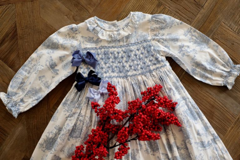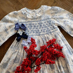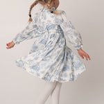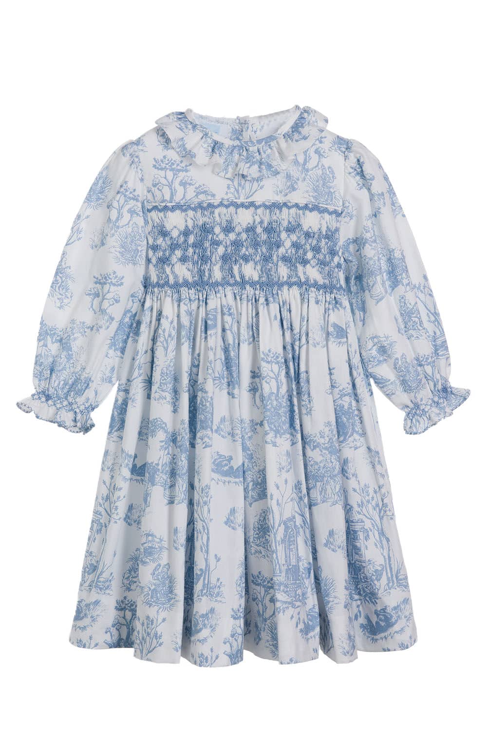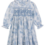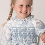 Take the classic Annafie sky blue toile de jouy fabric through the seasons with this new style for Autumn/Winter. Full sleeves and a delicate frilled pierrot collar give this dress its own unique character whilst still making it one of Annafie¡¦s most iconic looks. Exquisite hand smocking and embroidery details add a final flourish.