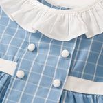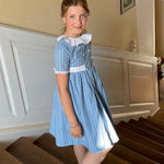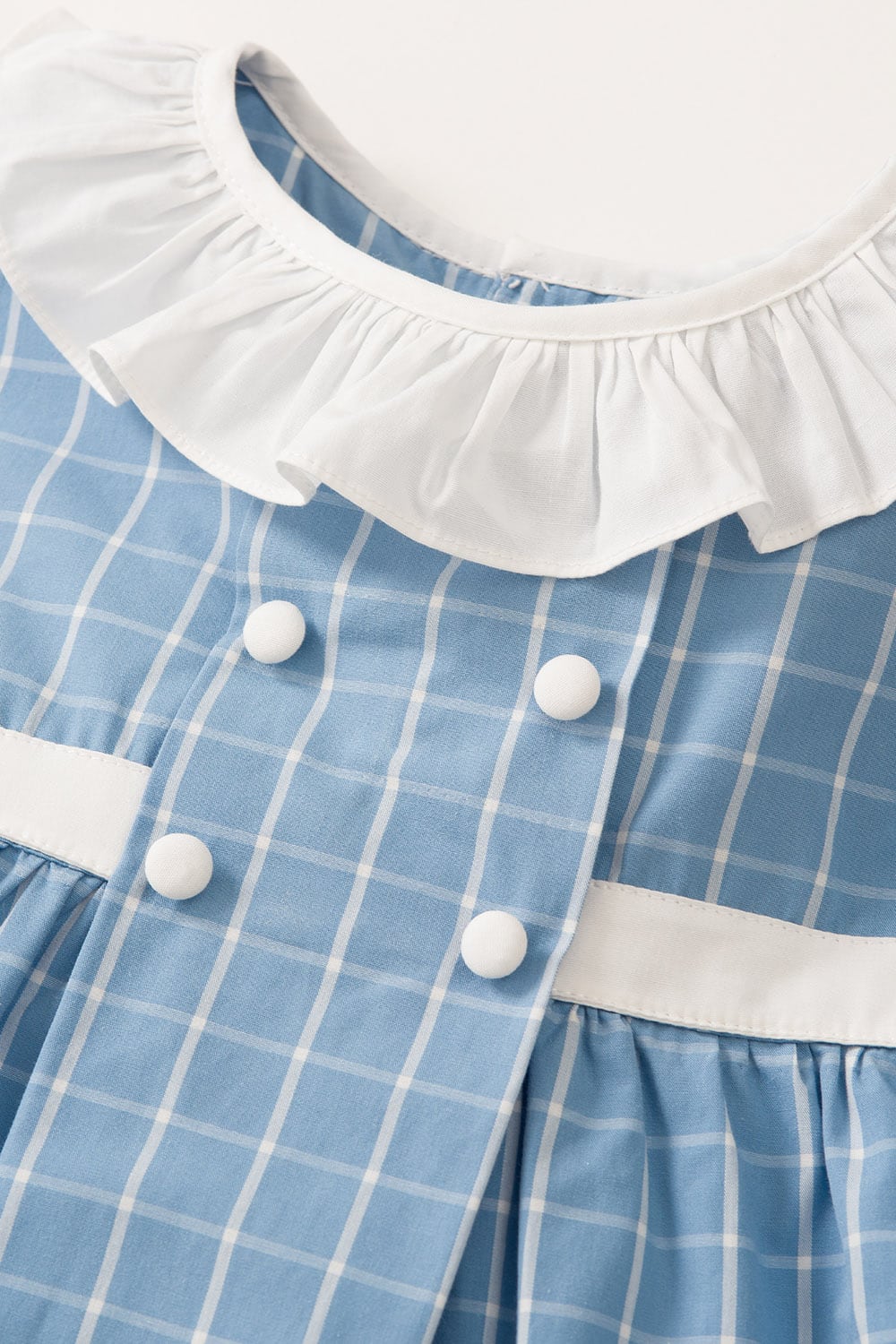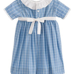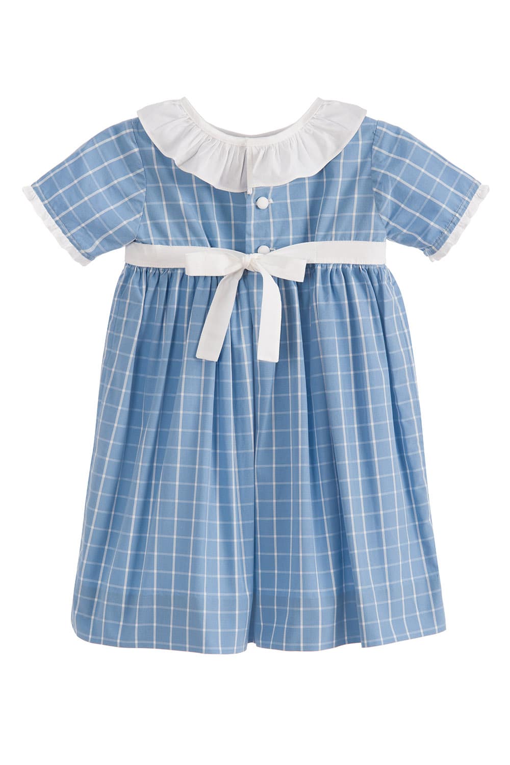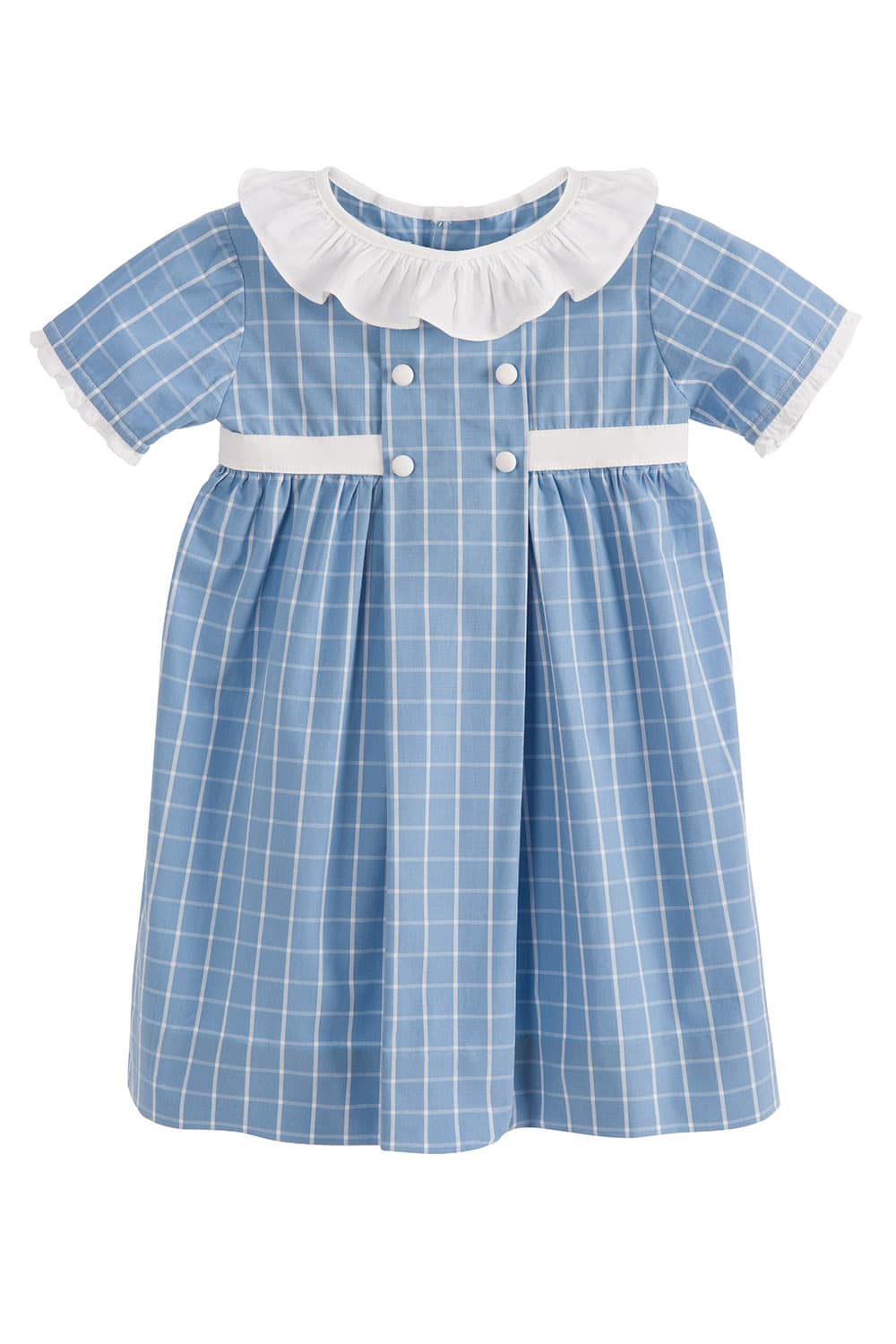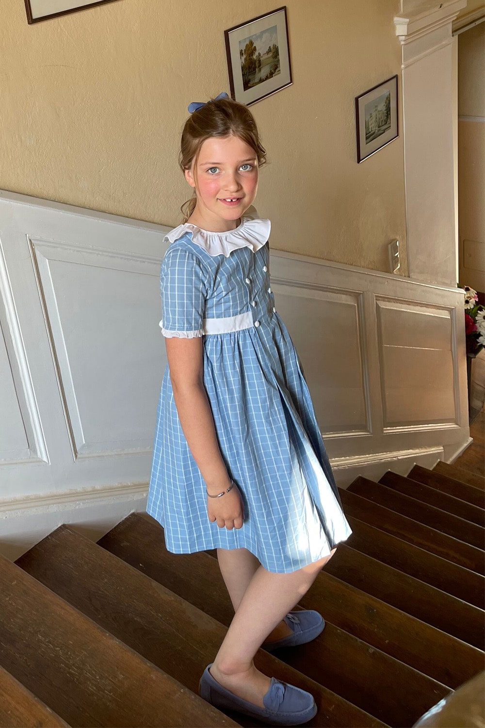 Introducing our latest addition to all our all-year-round styles ¡V the stunning Beatrice dress! Featuring a soft and elegant light blue check pattern, this dress is the perfect choice for any little one who loves to dress up and stand out.