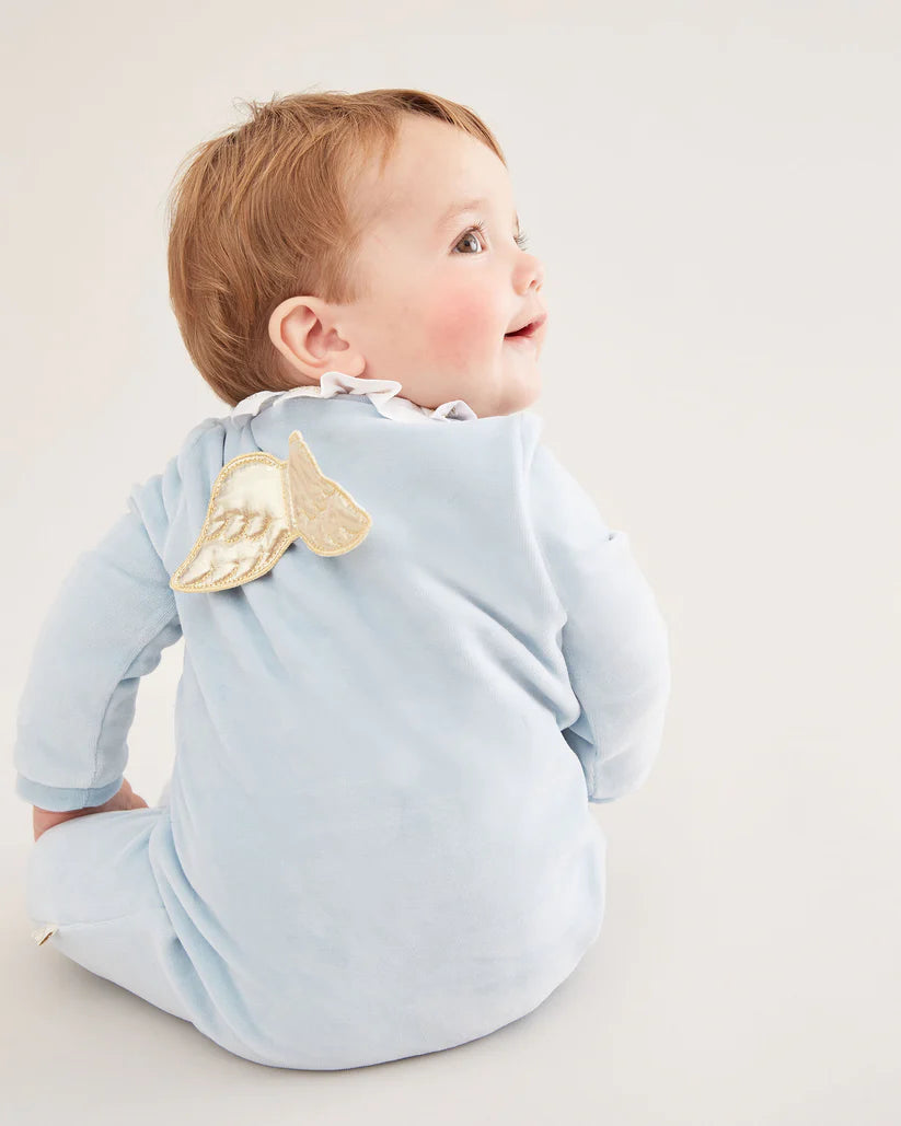 Made from the softest cotton, Marie-Chantal's best-selling Angel Wing Velour Sleepsuit in gold & dusty blue features our signature Angel Wing. Designed with comfort and quality in mind to keep your little one cosy.
