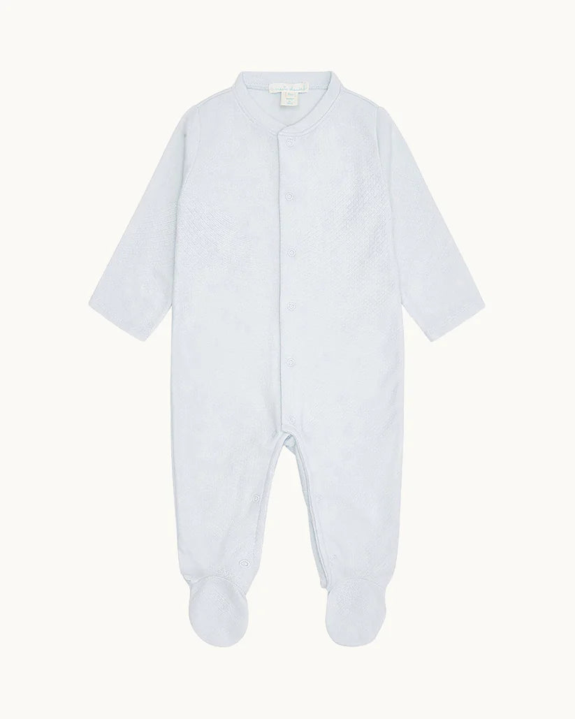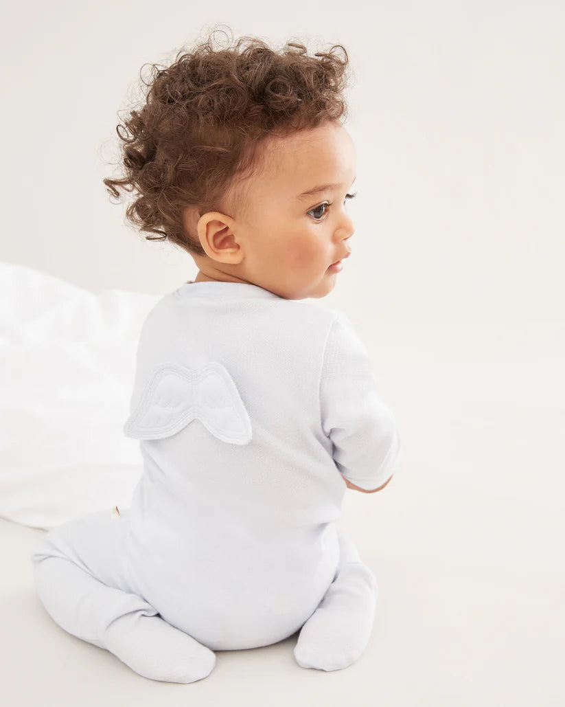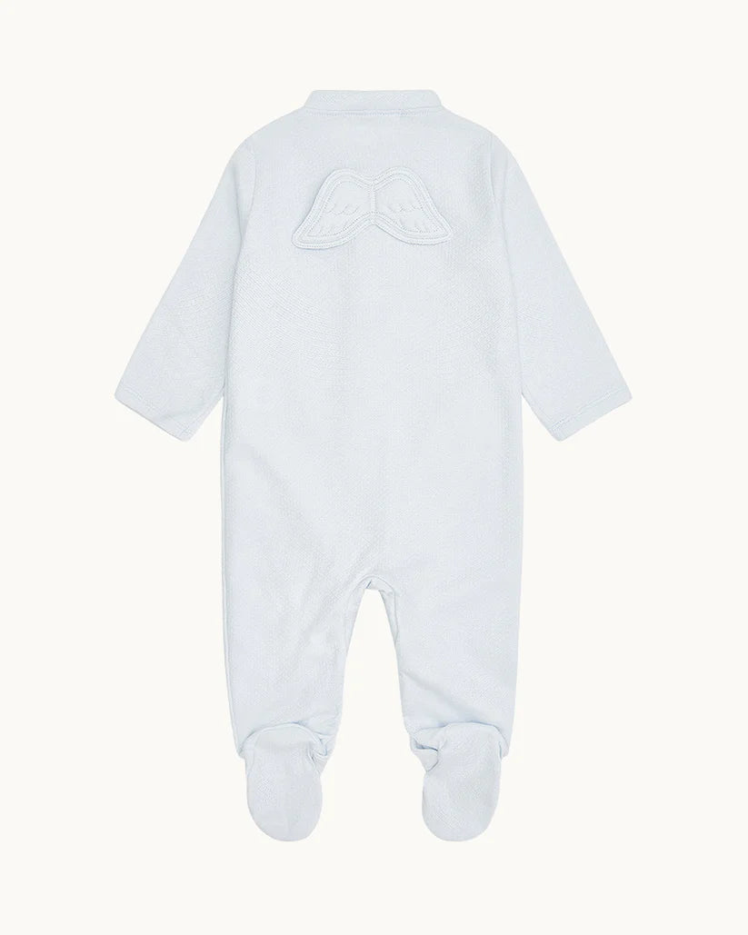 Made from 100% Pima Cotton, Marie-Chantal's best-selling Angel Wing Pointelle Sleepsuit in blue features our signature Angel Wing. Designed with comfort and quality in mind to keep your little one cosy.