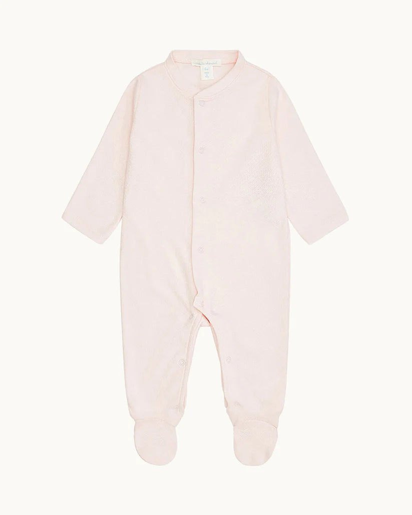 Made from 100% Pima Cotton, Marie-Chantal's best-selling Angel Wing Pointelle Sleepsuit in pink features our signature Angel Wing. Designed with comfort and quality in mind to keep your little one cosy.