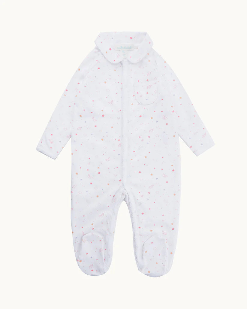 Perfect for easy dressing, our Star & Crown Pima Cotton Wrap Onesie is made from the softest Pima Cotton. It features hand-embroidered detailing on the collar and closes with press studs for easy changing.